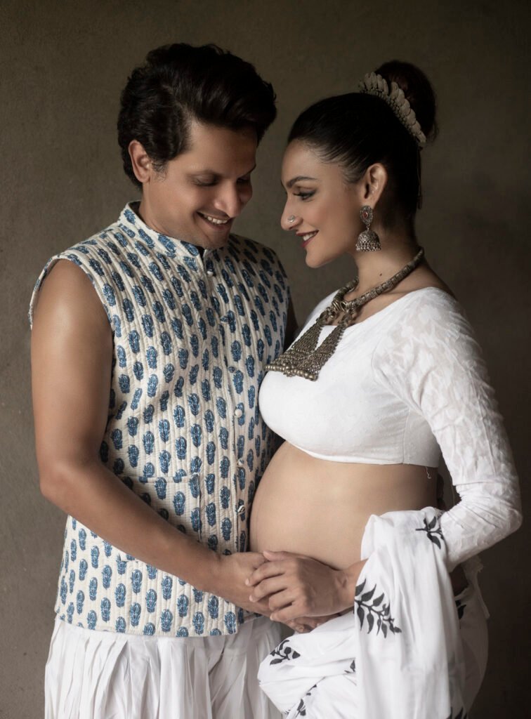 “If Aslam wanted to have the birth traditionally at the hospital, we would have fought about it. We would have been upset, and maybe I would have pushed him into doing it. But 22 hours into labour, when I was tired and giving up and asking to be taken to the hospital, he would have agreed because he was never really into it anyway. Aslam came to all those classes of labor class with me for two months, there he was trained and was told to be on his A-game. He stood strong when I was losing strength and said, ‘No, baby, you can do it!’ For you to have a wonderful experience, you and your partner must be on the same page, and your partner must support you. Aslam was there from the beginning when we decided and intended to be full-time parents. We lived in Goa for the first seven months of Aayatt’s life. We had to do everything for our baby together because, due to COVID, we couldn’t hire anyone, so we massaged our baby, bathe her, and took care of everything together as a couple.”